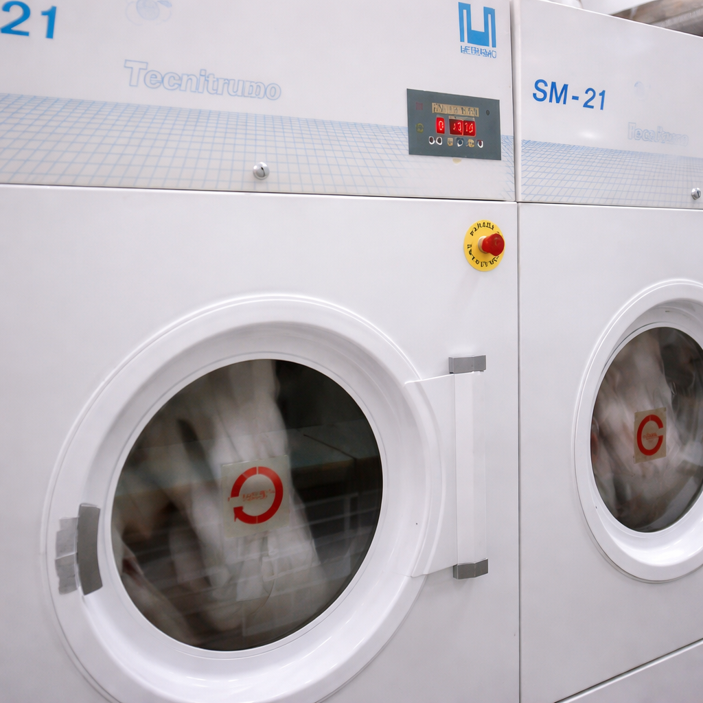 Utilizamos lavadoras y maquinaria Girbau de primerisima calidad para dar el mayor cuidado y limpieza a los tejidos.